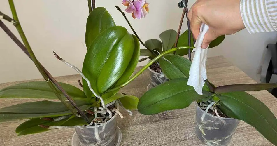 Para limpiar las hojas de tu orquídea de forma rápida y eficaz, existe un método fácil: utiliza toallitas húmedas , de las que se utilizan para cambiar el pañal de los recién nacidos. Tenga cuidado de comprarlos con la menor cantidad posible de productos químicos, perfume y más. Las toallitas higienizantes que se utilizan para limpiar las piezas del baño, por ejemplo, no son recomendables porque no solo son demasiado perfumadas sino que pueden ser demasiado ricas en agentes químicos.